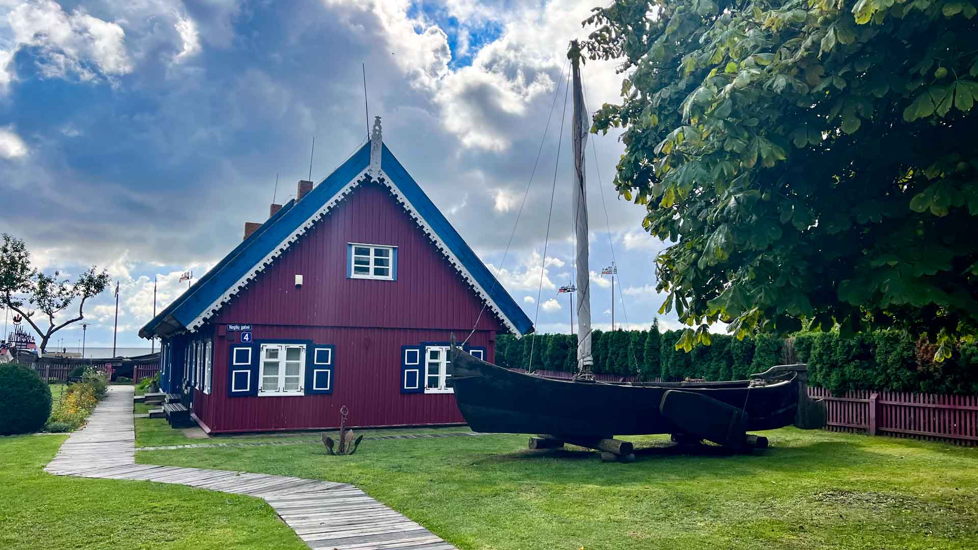 Als laatste komen we dan aan in Juodkrantė een weer wat groter dorp. We lopen wat rond langs de boulevard en de haven en op de terugweg kopen we nog gerookte markreel in een van de vele zuvis (wat gewoon vis betekend) winkels. Alhoewel winkel, het zijn gewoon wat open ramen in een huis.