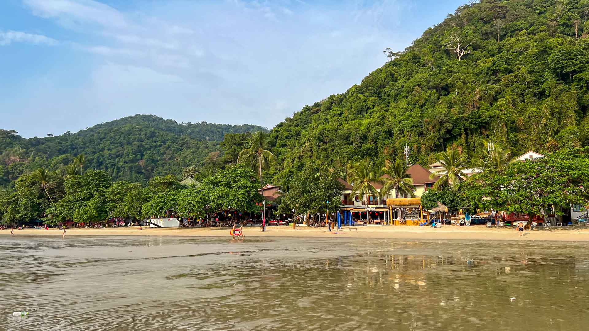 Bij de ferry moeten we een vaart wachten. In totaal zo’n 20 minuten. Maar eenmaal op de boot gaat de overtocht snel voorbij. Als we weer aan land zijn rijden we het laatste stuk naar ons hotel. Stevige klimmetjes pakken we maar eenmaal boven zien we het strand en de golf van Thailand al liggen. Inchecken bij Banpu Koh Chang Resort gaat met horten en stoten.