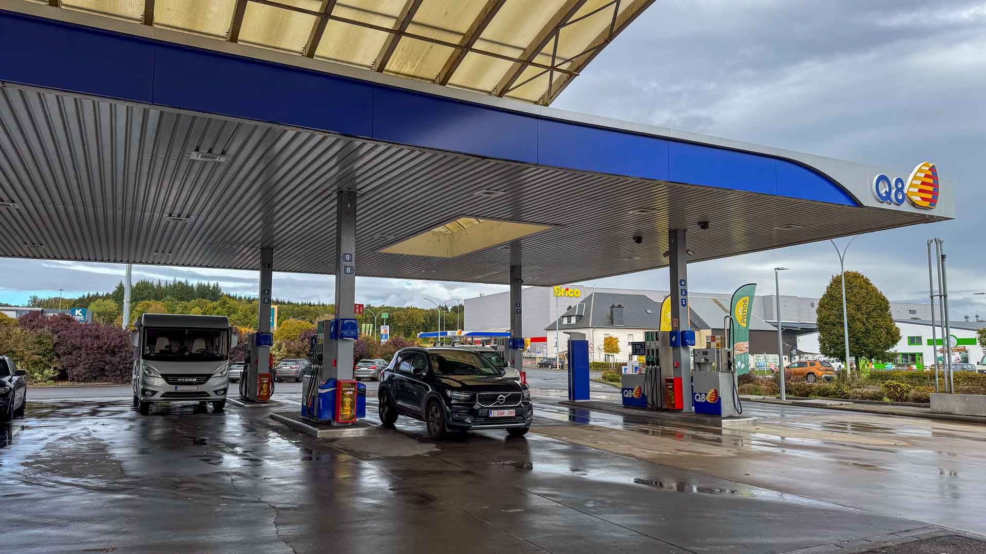 Helaas vinden we hier geen magneet maar niet veel verder passeren we Faussekuul. Hier op de camperplaats hebben we in 2018 onze eerste nacht doorgebracht met de mobilhome. We stoppen bij de campingwinkel maar ook daar geen magneet. Wel krijgen we het advies om het een paar honderd meter terug bij de Esso te proberen. En ja hoor daar vinden we onze koelkast magneet van Luxemburg.