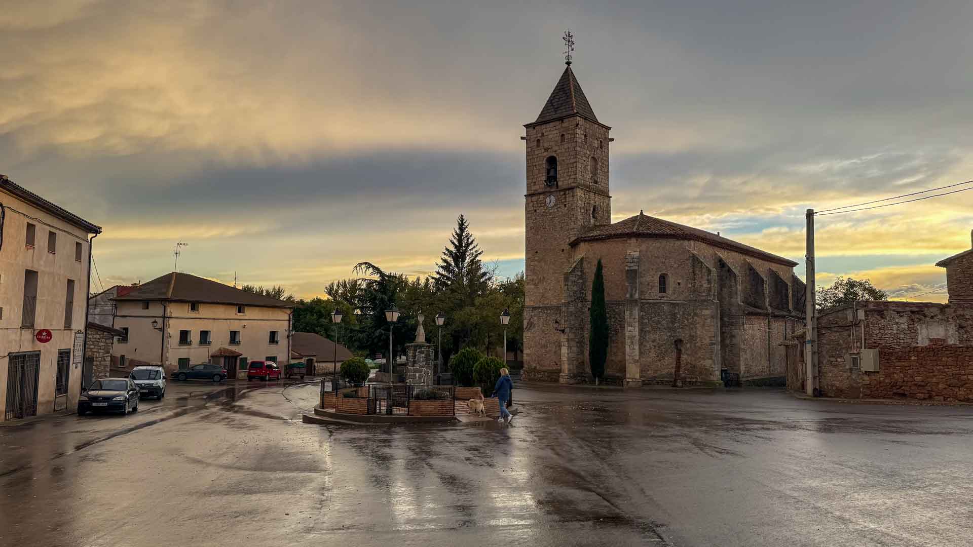 Helaas zijn de vooruitzichten voor morgen ook niet best dus besluiten we maar snel een plek voor de nacht te zoeken nu het nog droog is. Bij het binnen rijden van Fuentes Calientes worden we verrast door een keizerarend die laag over het dorp vliegt (helaas geen foto 🥲) niet veel later als we achter de kerk de lokale camperplaats oprijden vallen ook de eerste druppels.