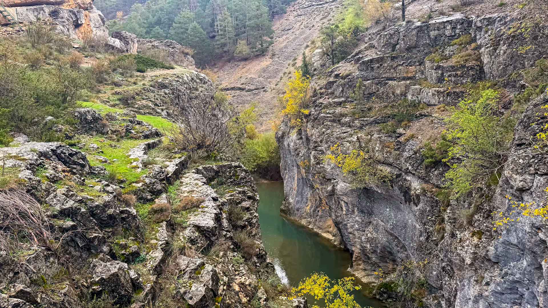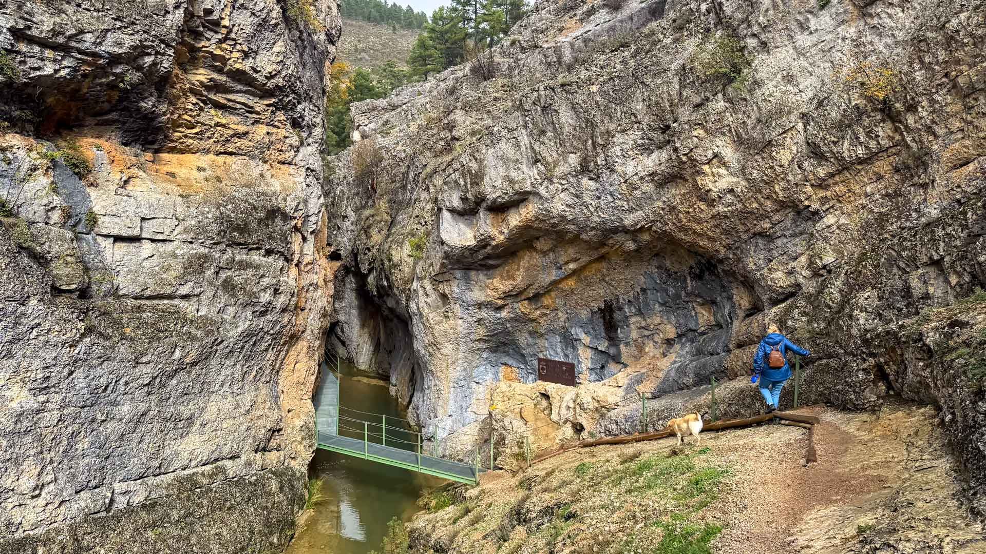 Eenmaal daar doen we de wandelschoenen aan en vertrekken we voor een hike van 5 kilometer naar Ruta del Barranco de La Hoz. Al snel zien we langs de enorme rotsen de Leonarda gieren vliegen, wel meer dan dertig stuks. Ondanks dat het af en toe regent wandelen we stug door in deze mooi kloof.