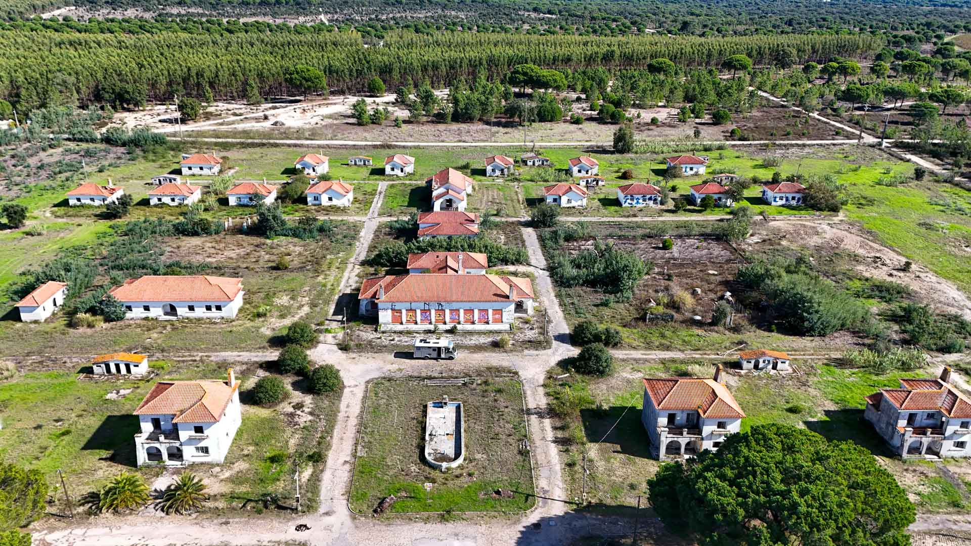 Na de bezichtiging van het verlaten dorp gaan we verder naar Lissabon. Het is tegen half twee als we ons gaan aanmelden bij de receptie. Niet veel later hebben we een plek en staan we geïnstalleerd. Voor een camping zo dicht bij de grote stad vinden 29 euro nog wel meevallen, zeker omdat het alles inclusief is. Omdat de stroom dus inclusief is gaan we die dan ook maar voor het eerst deze vakantie gebruiken. Scheelt in ieder geval weer wat gas voor de koelkast.