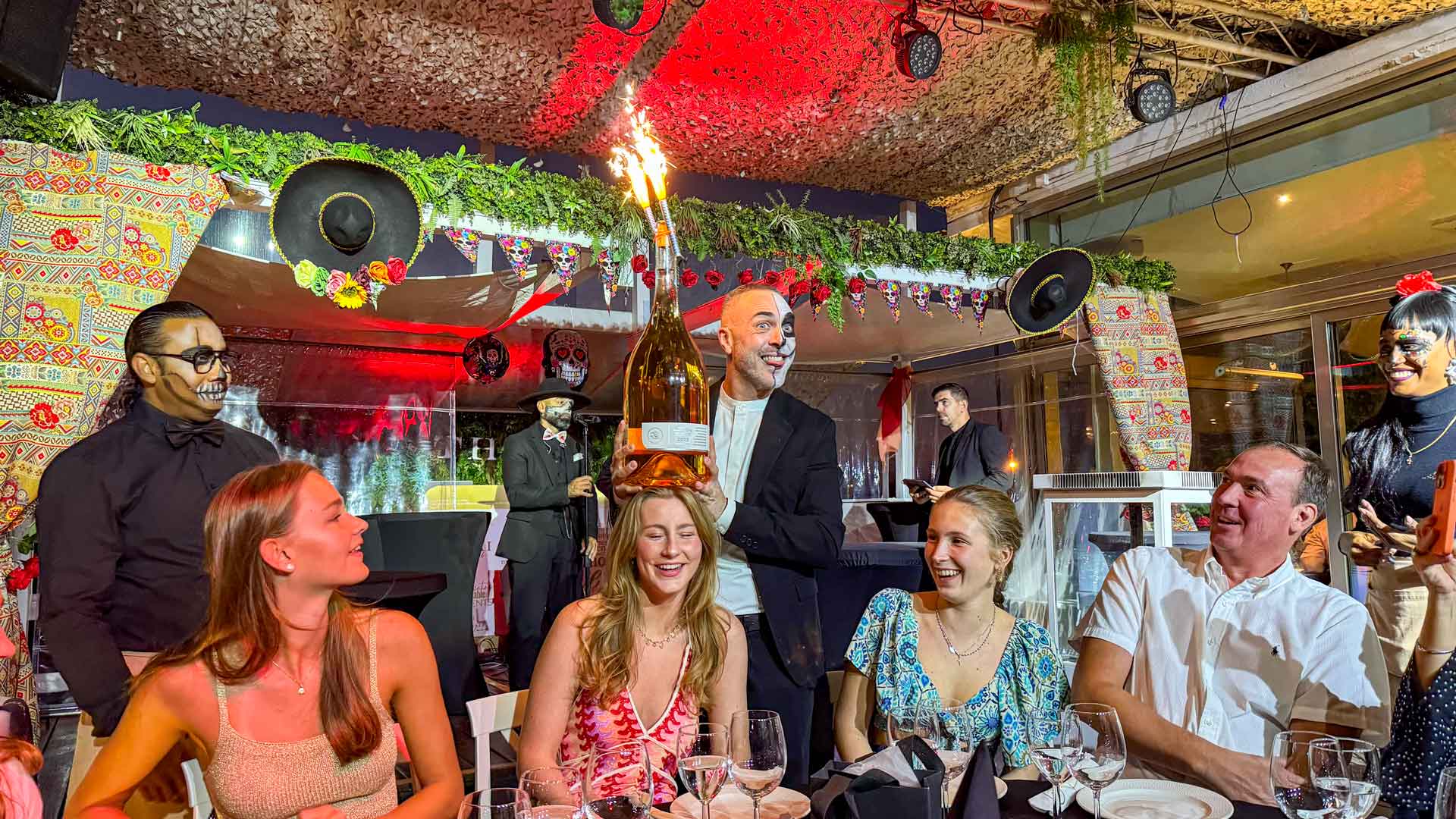 Een uur later ter is het tijd om naar Thai Beach club te vertrekken. Er is vanavond een Halloween thema dus al het personeel is geschminkt. Met lekker eten, drinken en live muziek zit de sfeer er gelijk goed in. Het werd een latertje.