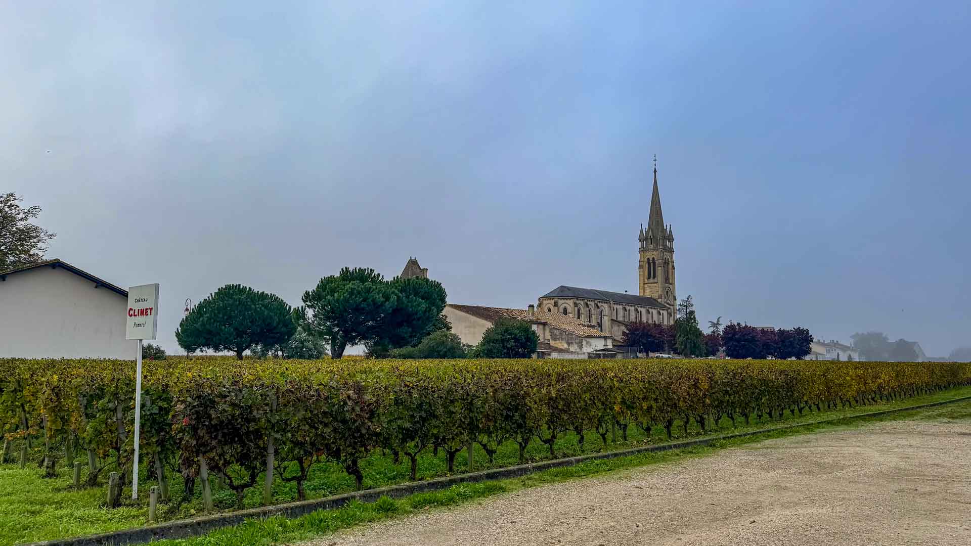 Onze fles Saint-Émilion van Chateau de Rol smaakte prima gisteravond. Tijdens het kijken van de slimste mens ging hij toch helemaal op. Vanochtend wordt Robert wakker van de vogels. Jeannette slaapt nog dus gaat hij maar naar buiten met Stella. Helaas is de wereld nog steeds bedekt in de mist. Terug bij de camper wordt ook Jeannette wakker, we ontbijten en maken ons klaar voor de volgende etappe van een kleine 6 kilometer naar Pomerol.