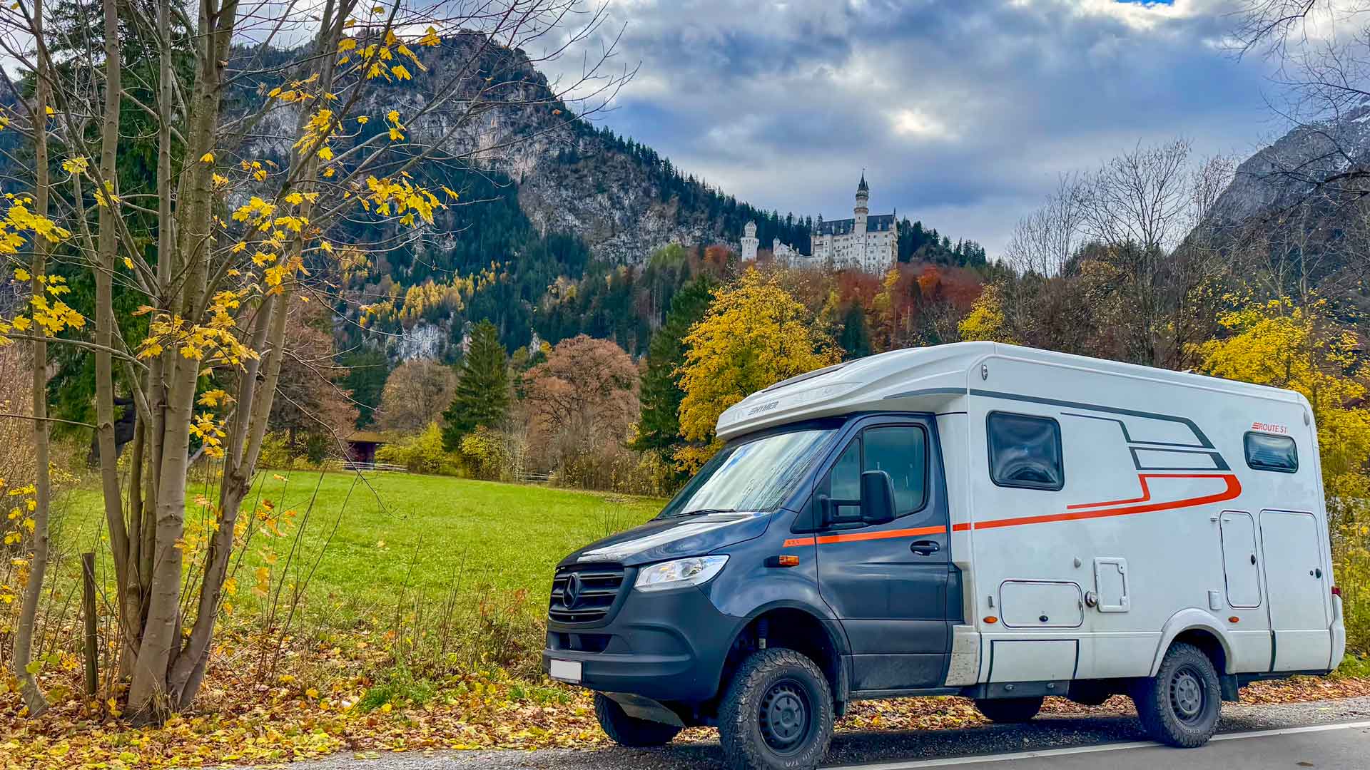 Na het ontbijt en onze vaste rituelen vertrekken we richting Füssen. Daar start de Romantische Straße en die willen we vandaag gaan volgen. Binnen een half uurtje zijn we de grens over en rijden we langs Füssen. Het ziet er al prima uit maar we willen eerst langs de Königschlösser Neuschwanstein en Hohenschwangau. Omdat Stella meer dan waarschijnlijk niet mee naar binnen mag houden we het bij een bezichtiging van afstand.