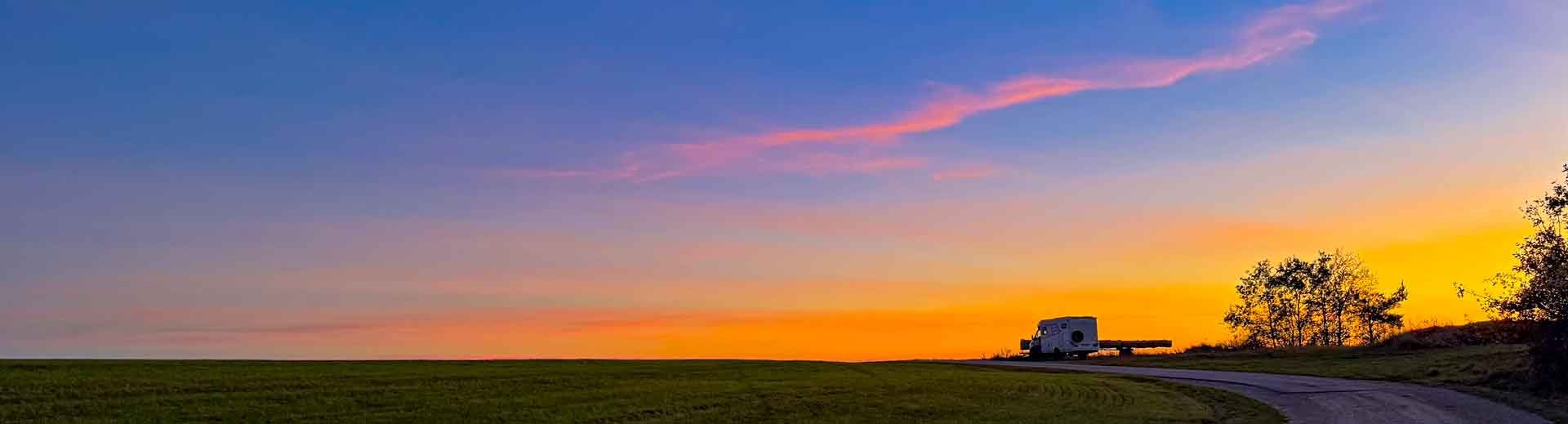 Na een heerlijke rustige nacht, na 18:00 uur gisteravond hebben we niemand meer gehoord of gezien op de plek waar we stonden. Zelf hebben we een Netflix serie gekeken en dan uiteraard de slimste mens, waarna we gaan slapen. Rond 6 uur zijn we wakker, buiten zien we een prachtige oranje skyline waar de zon opkomt. We proberen nog wat te slapen maar worden weer wakker van de kachel die opspringt om zeven uur. We blijven nog even liggen maar rond half acht gaan we er toch uit.