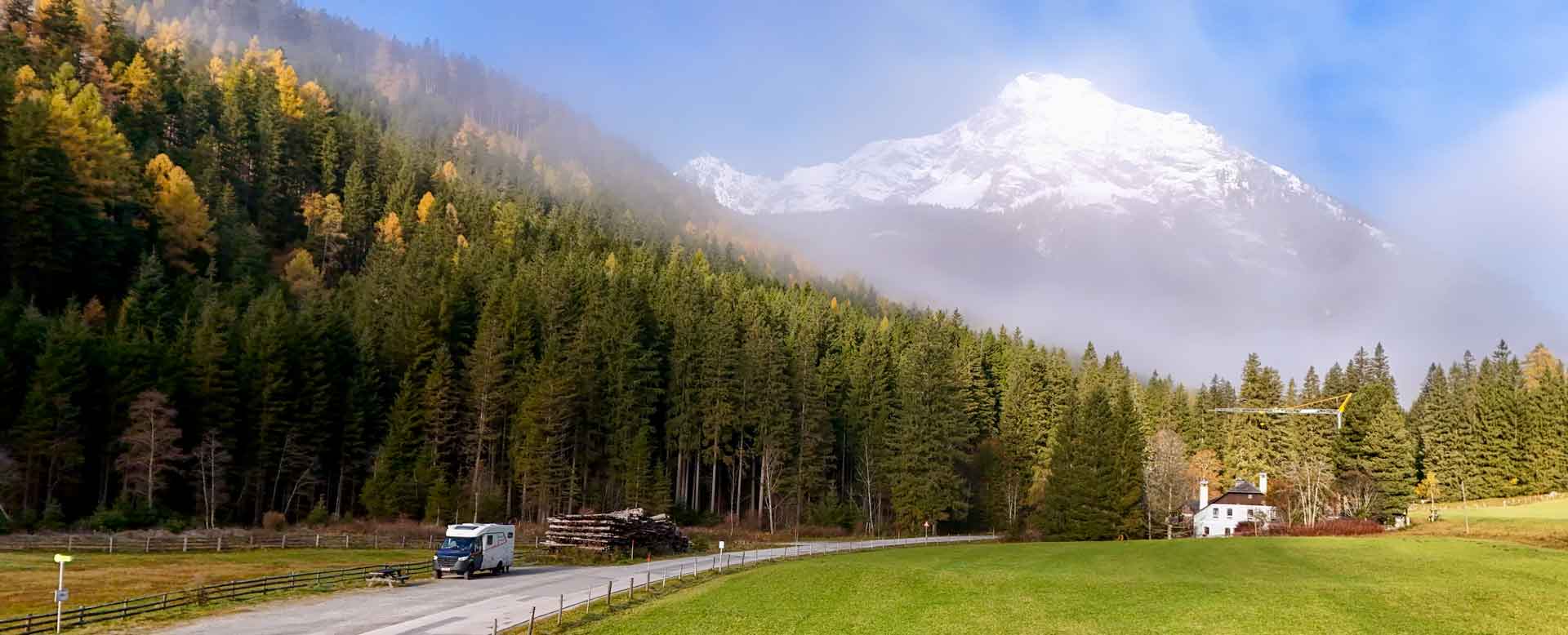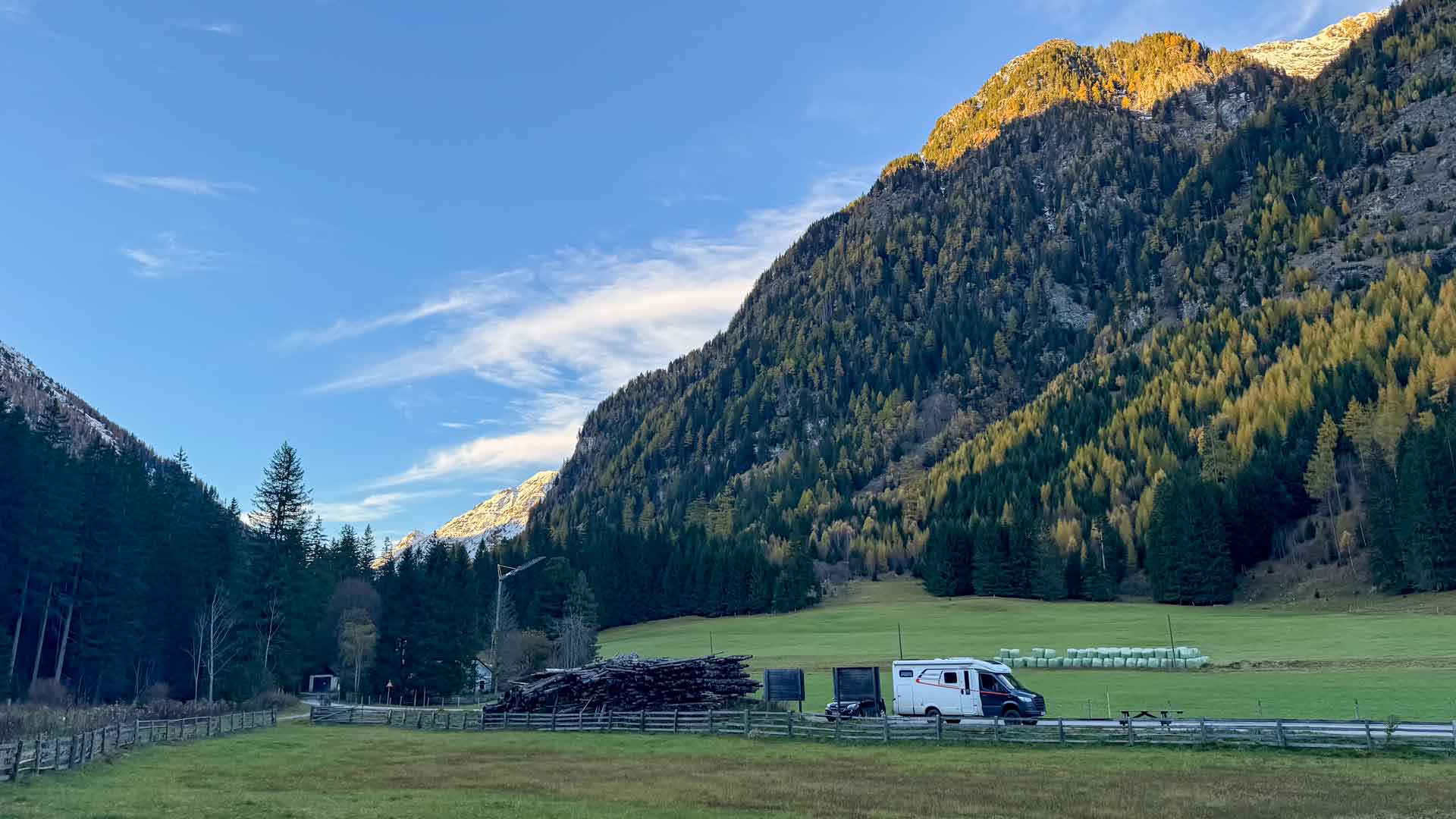 Het was een goede keuze qua weer om deze kant op te gaan. De hele dag rijden we al onder een helder blauwe lucht met een lekker zonnetje door Oostenrijk. De temperatuur varieert tussen de 5 en 13 graden maar is prima te doen. Na de hike trekken we weer wat noordelijker want het eind van de vakantie zit er toch aan te komen. We willen nog twee dagen in Oostenrijk blijven en wat rond toeren door de verschillende skigebieden waar we ooit zijn geweest. Het landschap is zo prachtig dat de Oostenrijkse nachtvorst ons camper avontuur nauwelijks beperkt.