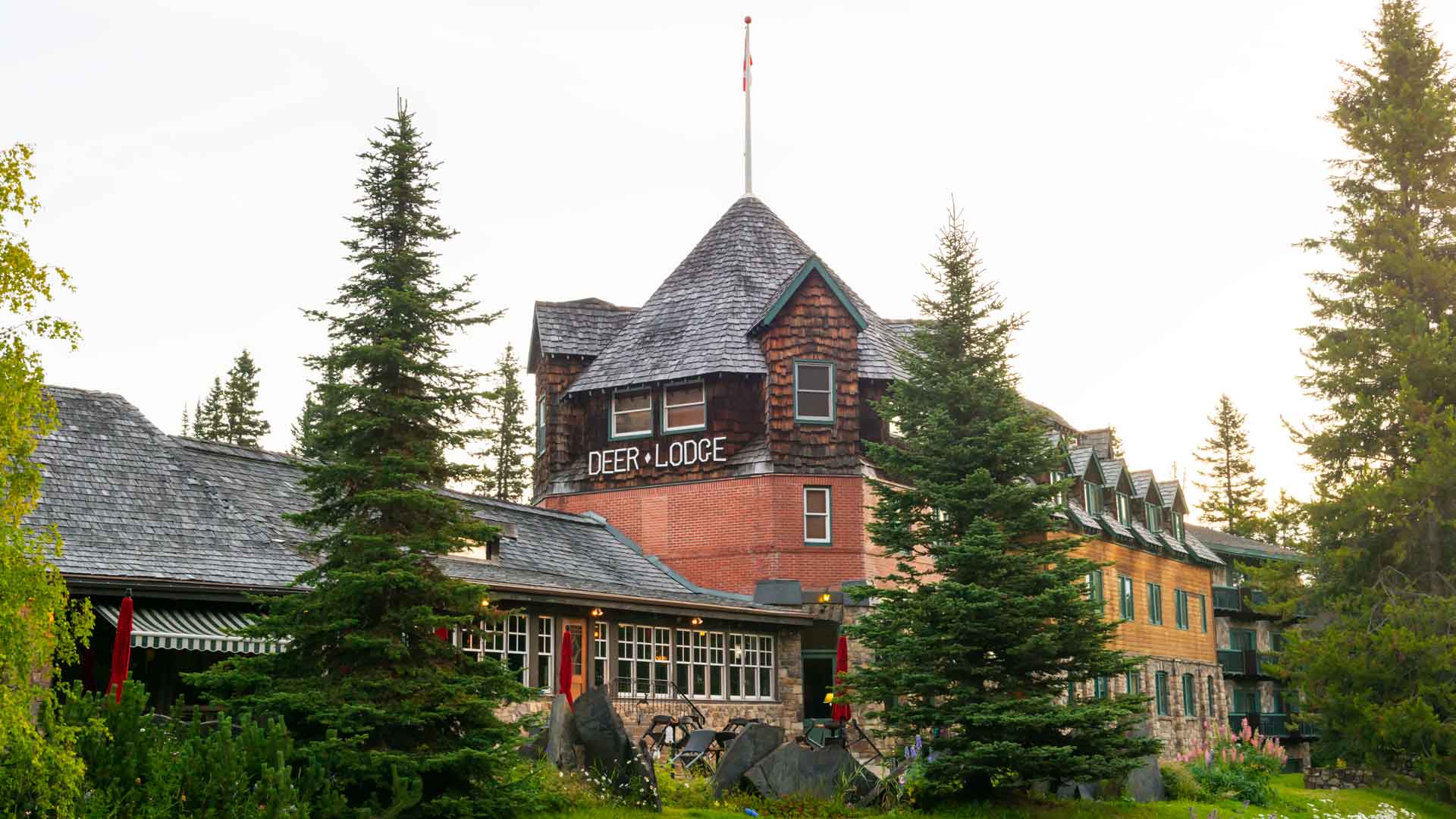 Niet veel later komen we aan bij de Deer Lodge, ons hotel voor vannacht. Natuurlijk zijn we weer veel te vroeg en zijn onze kamers nog niet klaar. Dan maar op stap naar Lake Louise. Het is een mooi meer, heerlijk smaragdgroen water met op de achtergrond de Lefroy gletsjer. Omdat we toe zijn aan een terrasje pakken we de bus naar Lake Louise village.